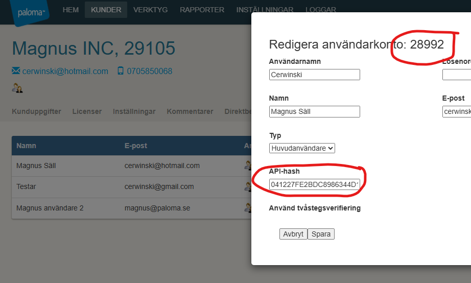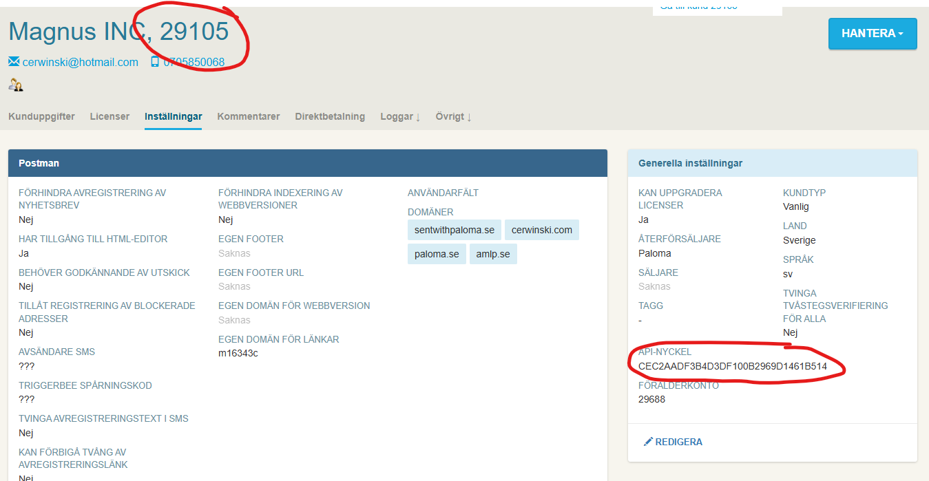 * Kund-API-nyckel